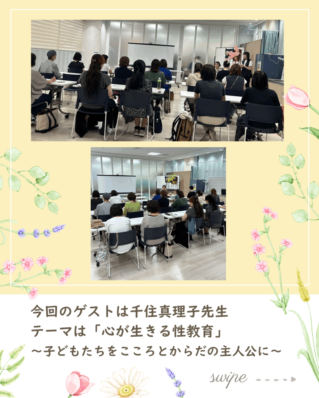 講演は、千住真理子先生をお迎えしました。これまでのイベントに参加された参加者の複数の方より「発達障害の子たちに性教育を教えていらっしゃる先生の話をきてみたい」とご意見を頂いたことがきっかけとなり講演をお願いしました。