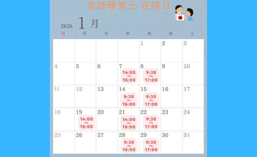 2026年1月は上記スケジュールにて言語聴覚士が在院しております。